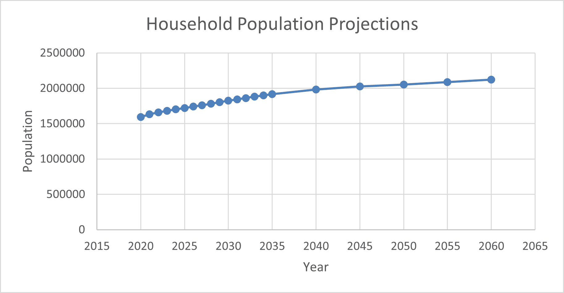 The following graphs shows the projections for population and employment from the Growth Projections and Land Use Assumptions 2024 Update completed by Applied Economics.