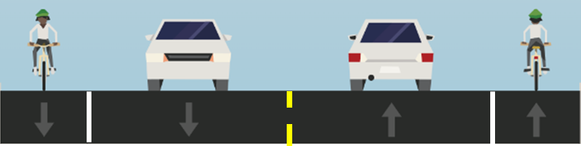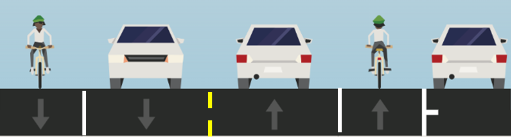 Possible considerations include narrowing travel lanes to remove parking from one side of the street to widen the existing bike lanes to provide more distance between riders and passing vehicles.